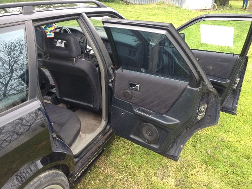 Ein paar teile sind noch dabei die liegen hinten im Fussraum wie die Fensterkurbeln von den Hinterenscheiben Kautsprechergitter usw.